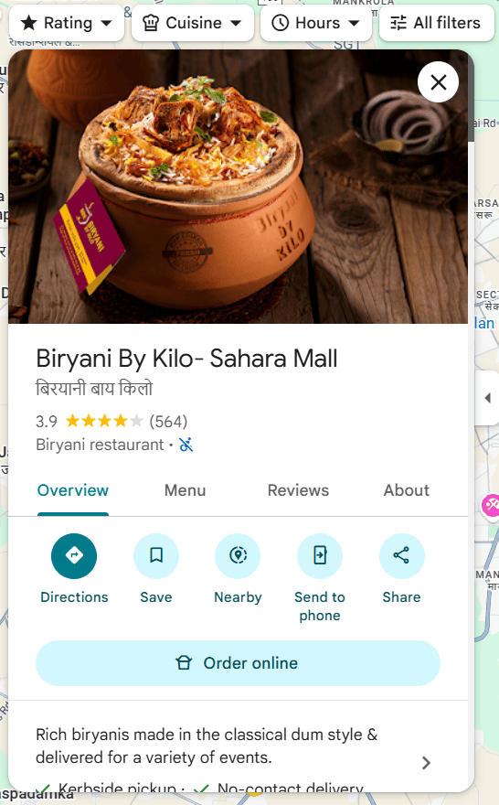 Pro Tip: Geo-tag your photos (like “Biryani by Kilo, Gurgaon”) - Google map visibility skyrockets.